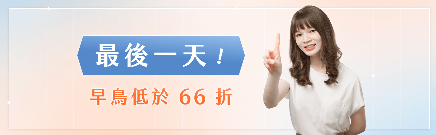 最後一天!早鳥低於 66 折方案