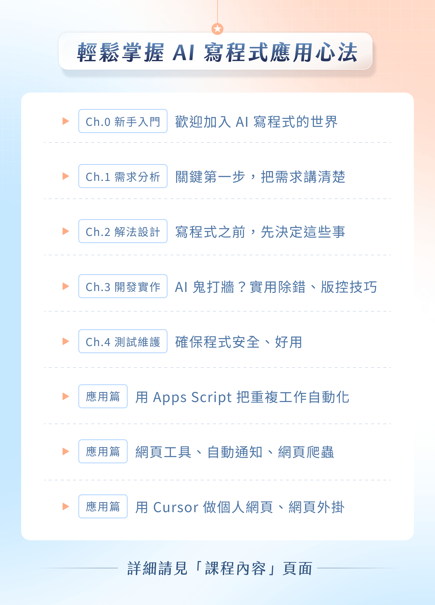 ☆ 9 大章節,課程長度預計 7 小時